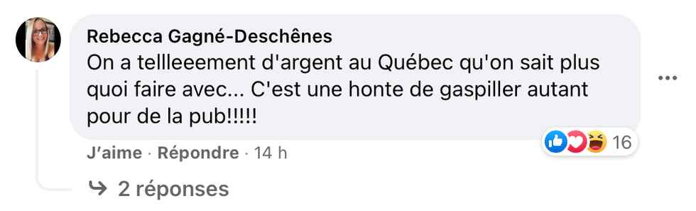Certain.es ont également soulevé que la publicité a un coût : « On a tellement d'argent au Québec qu'on sait plus quoi faire avec... C'est une honte de gaspiller autant pour de la pub ».