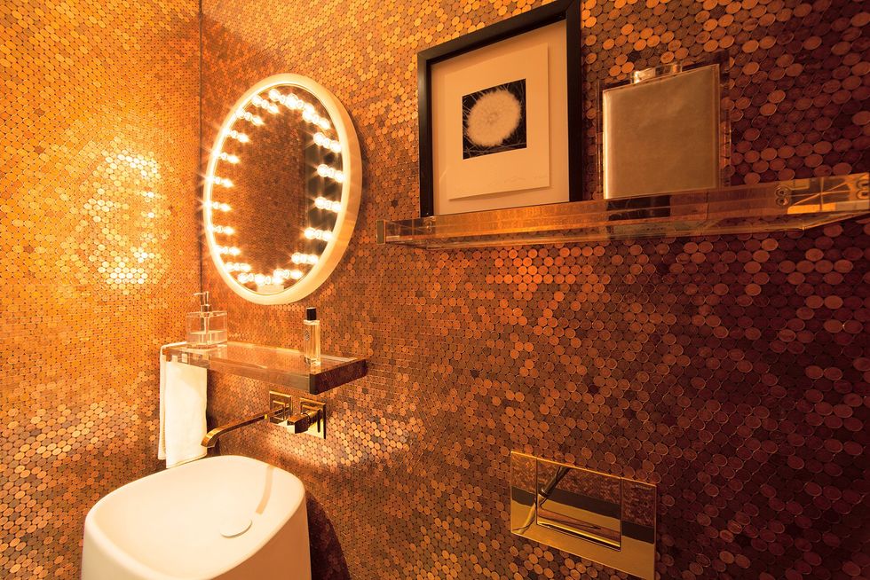 On y retrouve des matériaux haut de gamme et insolites, comme des murs en soie, du velours et du marbre.