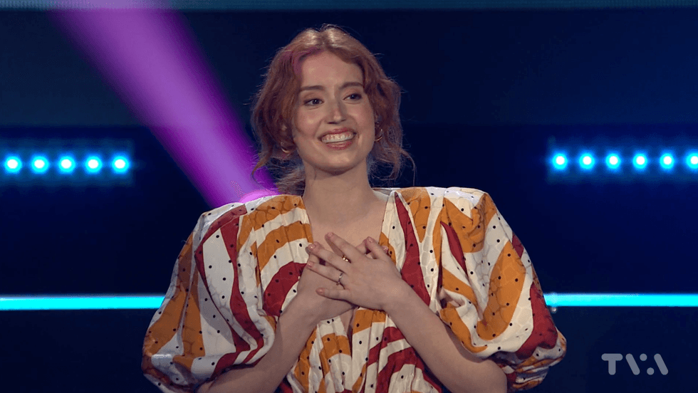 La grande gagnante de La Voix 2020, Josiane, était d'une élégance des plus modernes avec son complet tout blanc et ses boucles d'oreille argentées.