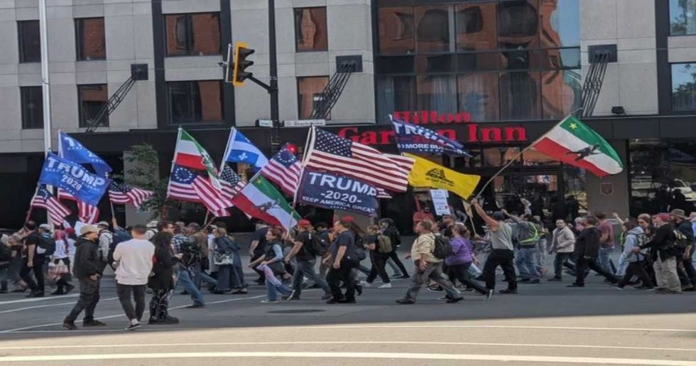 Une manifestation anti-masque a eu lieu hier à Montréal avec des drapeaux « Trump 2020 »