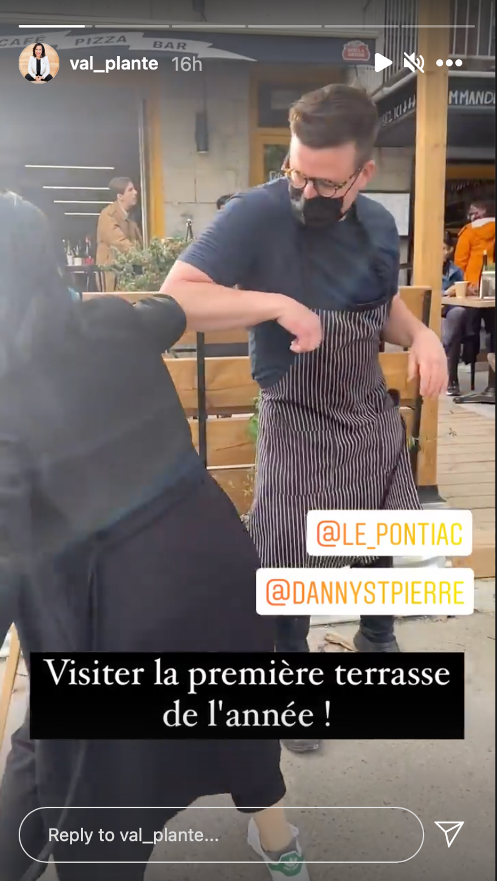 La mairesse s'était rendue en fin d'après-midi sur la terrasse d'un nouveau restaurant de l'avenue du Mont-Royal, Le Pontiac, et a salué le chef à son arrivée par un « check de coude ».