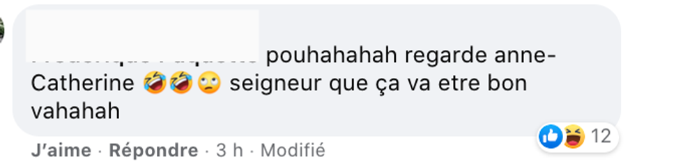 « pouhahahah regarde anne-Catherine seigneur que ça va être bon vahahah »