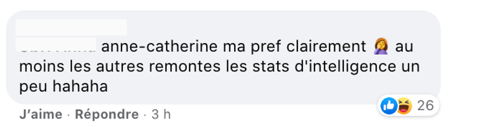 « anne-catherine ma pref clairement au moins, les autres remontent les stats d'intelligence un peu hahaha »