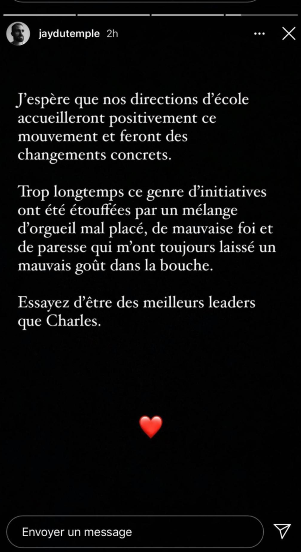Et finalement, Jay Du Temple qui a terminé un message des plus sérieux avec une flèche vers Charles.