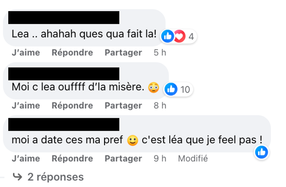 « Mia a raison, c'était un move bizarre de la part de Léa. Like girl tu viens d'arriver et tu veux déjà savoir tout le drama... Mauvaise impression direct! », exprime une internaute sur Twitter.