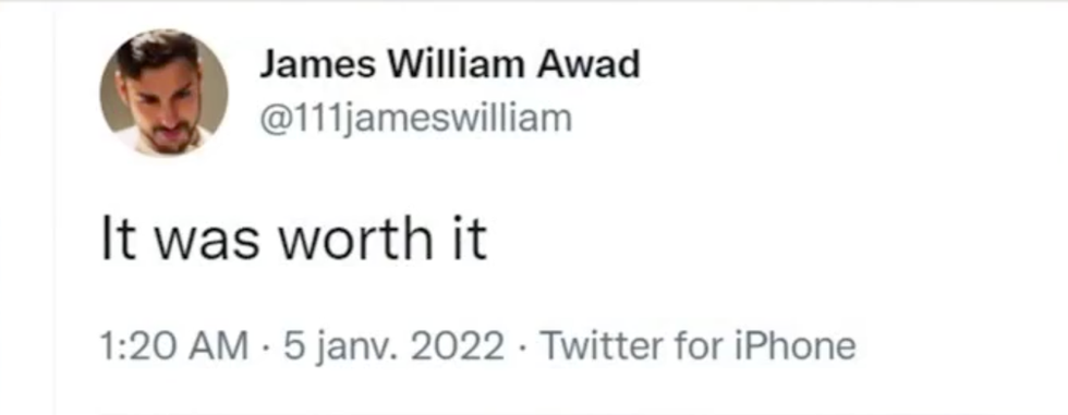 I take this matter very seriously. A simple party on a plane did all this buzz. I will take a moment to sit down and re think everything. Especially how I can do things better next time. Give me a moment to understand the situation better.— James William Awad (@James William Awad) 1641405867