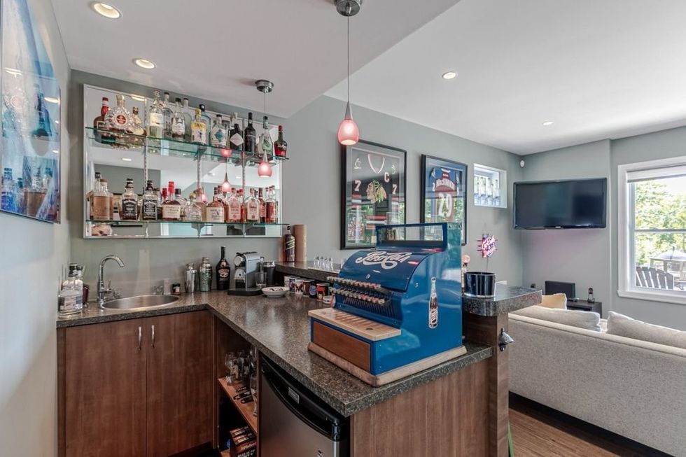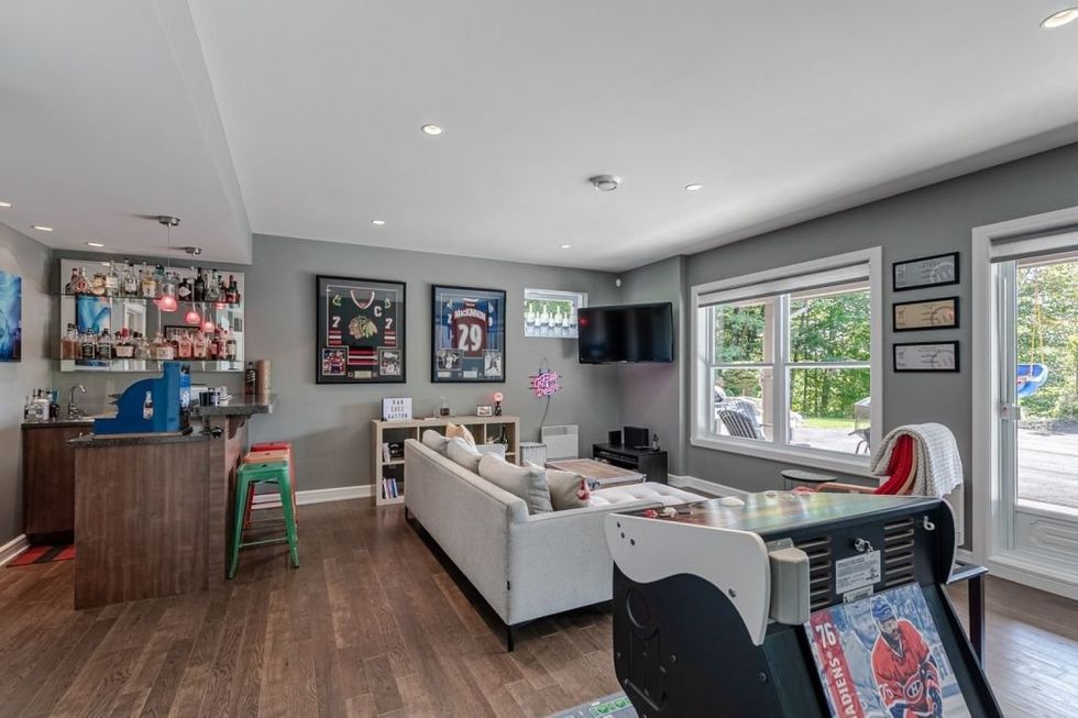 Au sous-sol, Philippe a aménagé son espace en une sorte de man cave, alors qu'arcades, téléviseurs et petit bar permettent de transformer n'importe quelle soirée banale en un moment marquant.