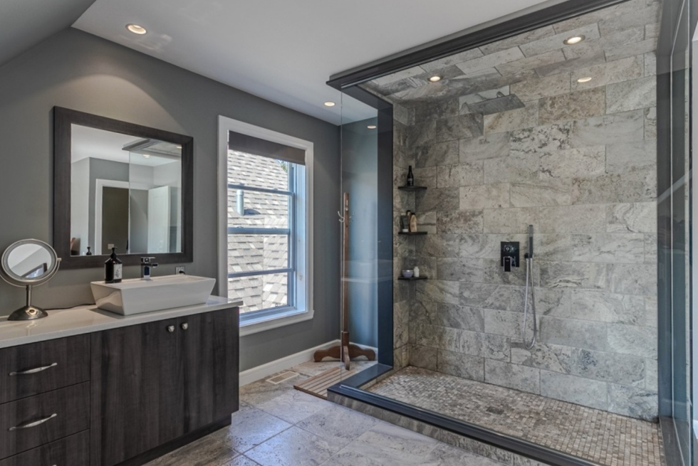 À partir du lit, il est possible d'avoir une vue sur la luxueuse douche vitrée.