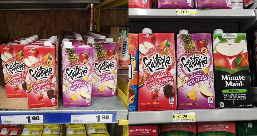 Détails : Pour exactement le même produit, que ce soit de la marque Fruitopia ou Minute Maid, ces boîtes de jus sont environ 75 sous de moins qu'à l'épicerie.