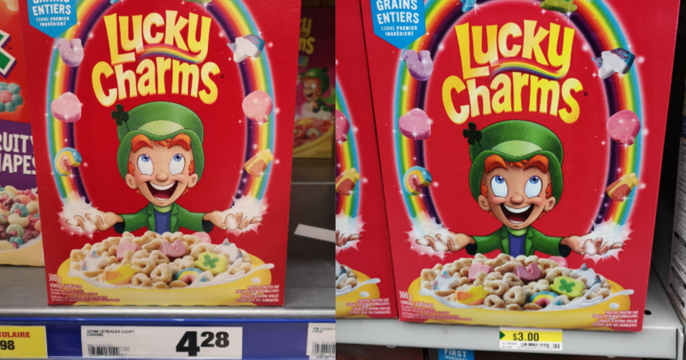 Détails : Même emballage, même quantité, mais un rabais assez impressionnant pour ceux qui aiment ces céréales sucrées. Comme quoi ça vaut parfois la peine de s'arrêter dans les allées de nourriture au Dollarama.
