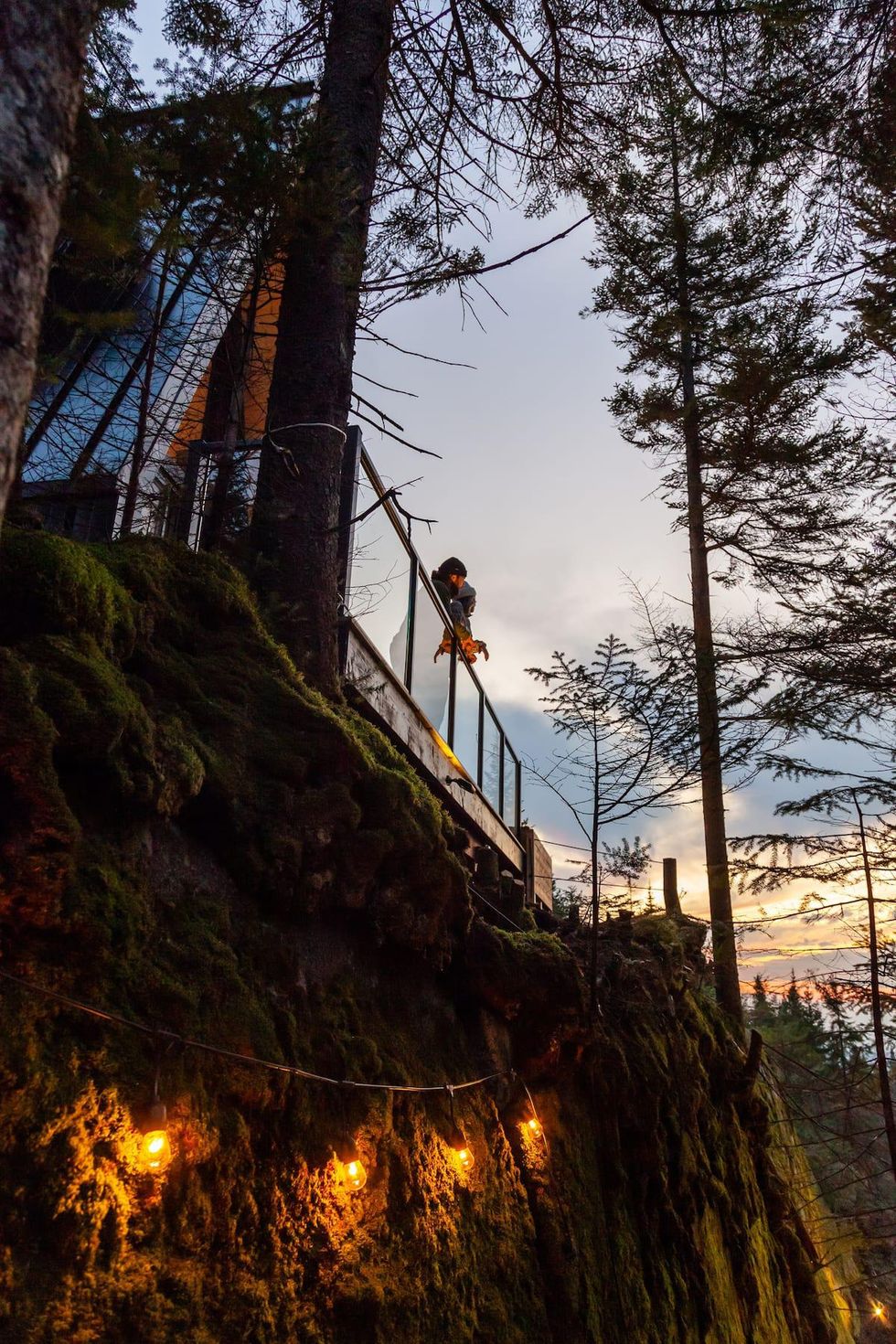 Il y a également un adorable petit chemin qui longe la falaise, qui est éclairé par une guirlande de lumières ainsi qu'un foyer extérieur où s'installer avec une grosse couverture en soirée.