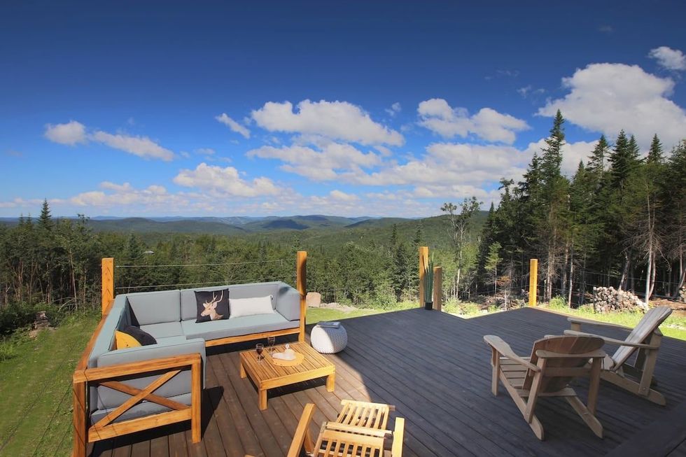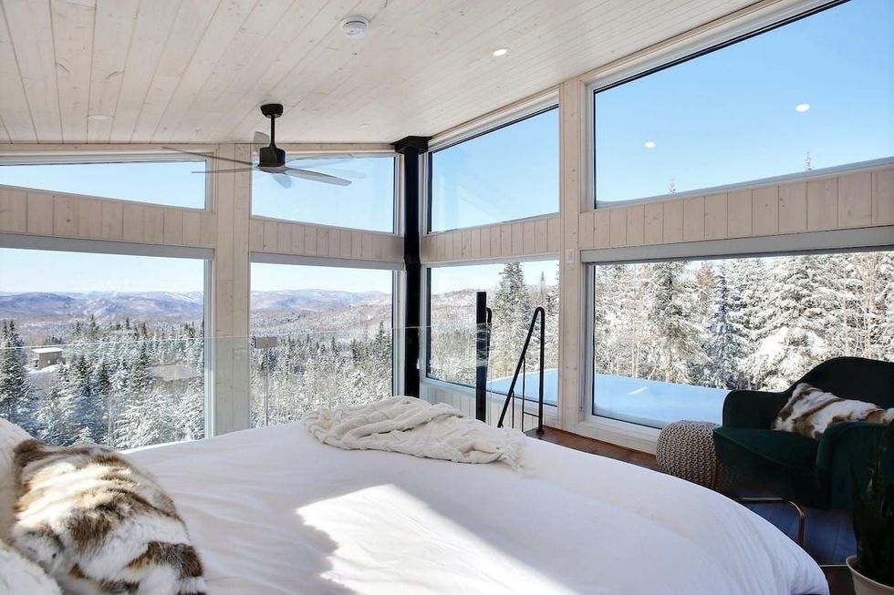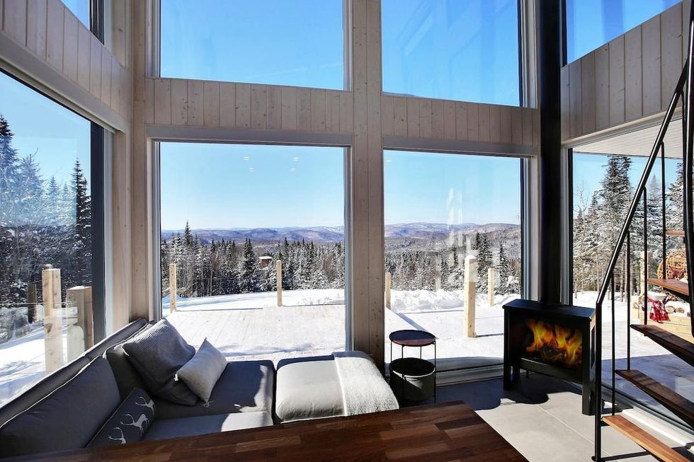 Au nord de la Ville de Québec se trouvent de véritables petits trésors pour passer un séjour en pleine nature et loin des centres urbains. Ce chalet, installé en pleine montagne, offre d'ailleurs une vue unique sur les couchers de soleil pour un parfait getaway romantique.