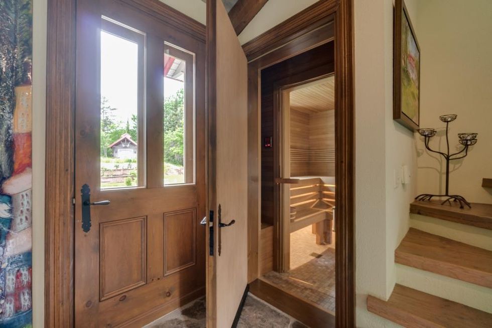 D'une pièce à l'autre, les matériaux aux allures tantôt rustiques, tantôt modernes, donnent l'impression de découvrir un nouvel endroit à chaque pas. De plus, des touches de luxe y sont aussi incluses, comme un sauna et deux foyers intérieurs pour profiter d'un petit feu.