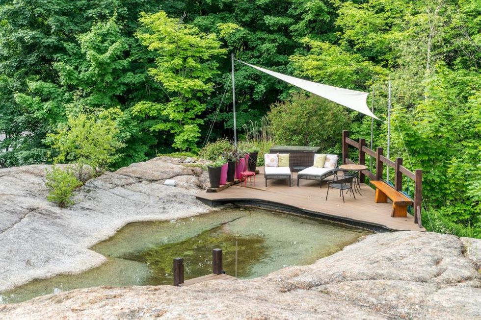 Et au beau milieu du magnifique terrain à l'arrière de la demeure, il y a un bassin naturel formé dans un rocher dans lequel il est possible de se rafraîchir et de profiter des petites terrasses qui l'entourent.
