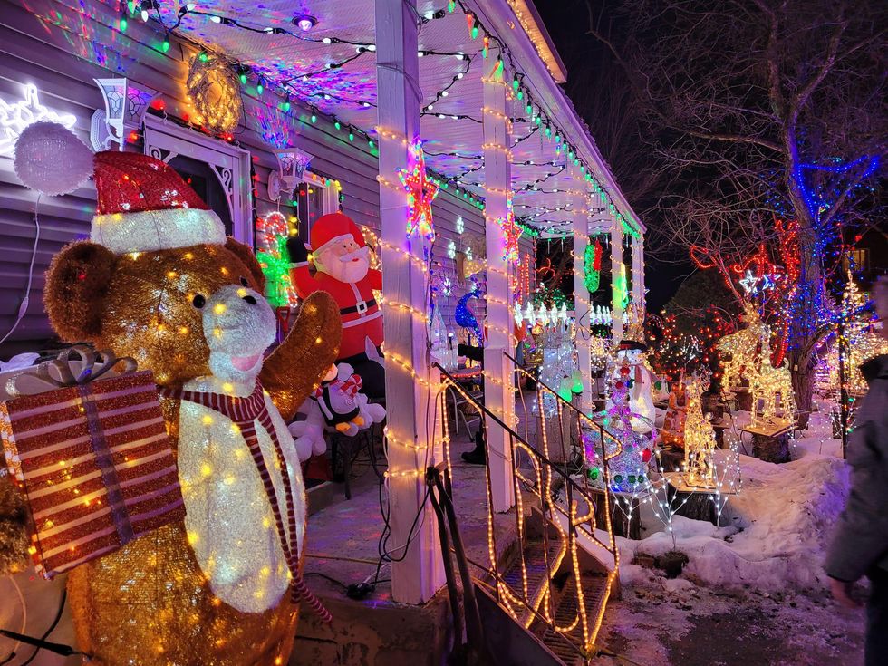 Sur les photos partagées par Sarah, il est possible de constater qu'en plus d'avoir une façade largement animée par des personnages, de grandes chandelles et des tonnes de petites lumières colorées, une allée formée de divers accessoires illuminés est accessible aux passants et passantes.