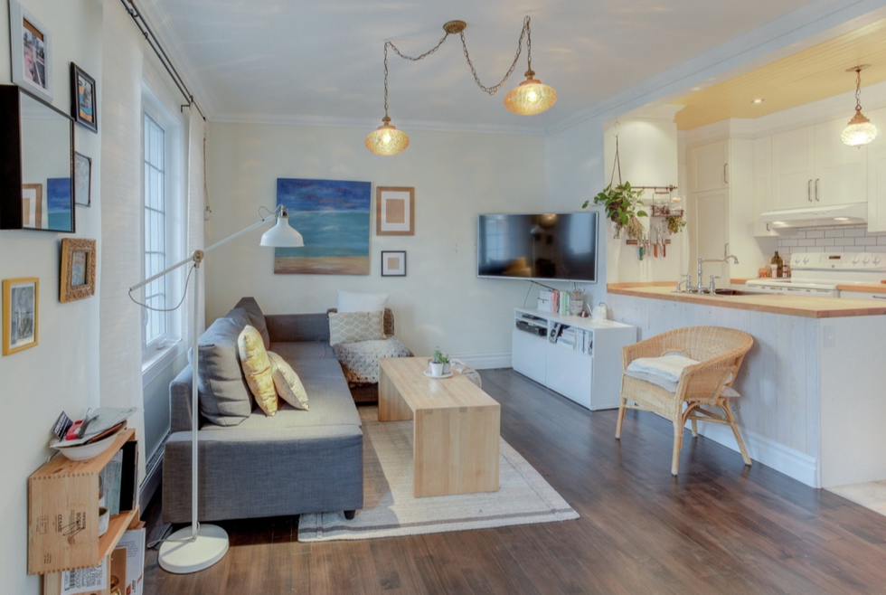 En voyant l'extérieur, on ne soupçonnerait pas que cette résidence à vendre, située à une vingtaine de minutes du centre-ville, a été rénovée dans un style boho chic vraiment tendance, et ce, pour moins de 250 000 $.