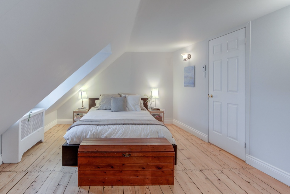 Cette demeure comprend deux chambres, une salle de bain et une salle d'eau. L'idée de dormir dans une pièce sous le toit en pente est particulièrement charmante.