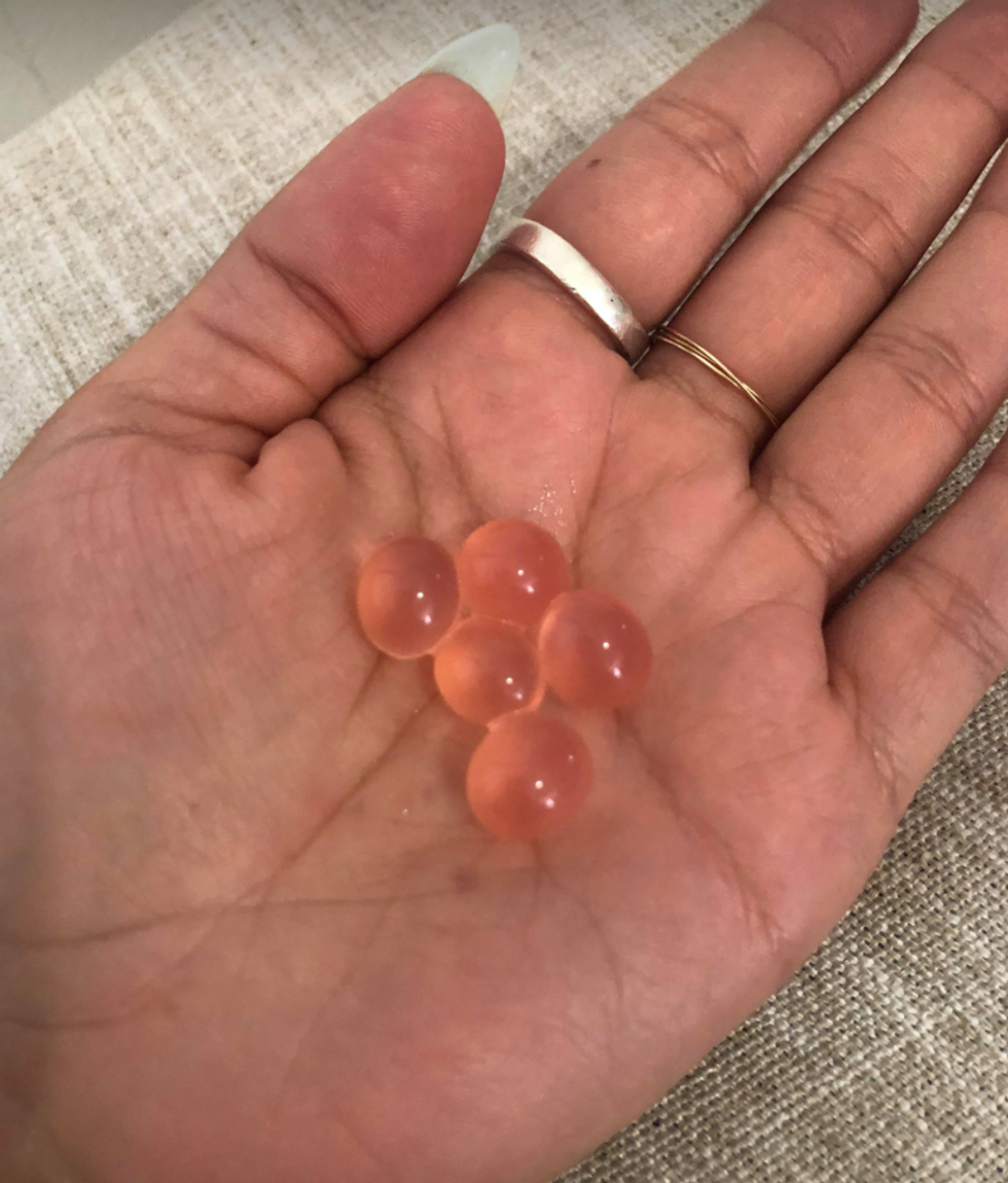 En fait, c'est de petites perles de membrane de tapioca qui explosent d'une texture gélatineuse, très fruitée et goûteuse en bouche. On peut facilement les comparer aux « perles éclatantes » du L2, qui ont exactement la même texture.