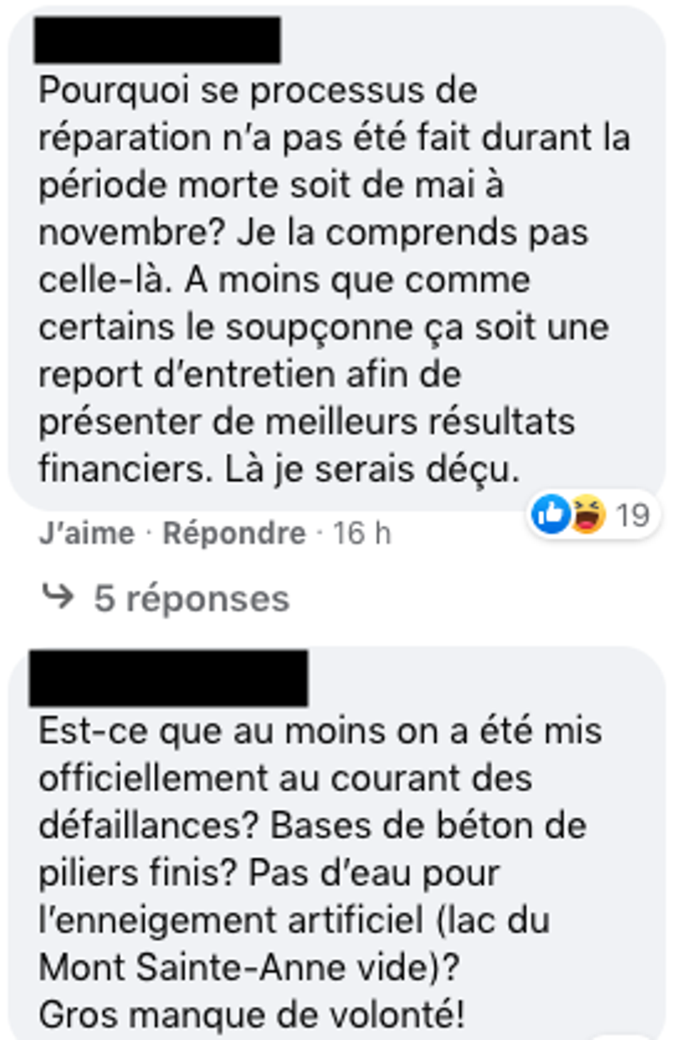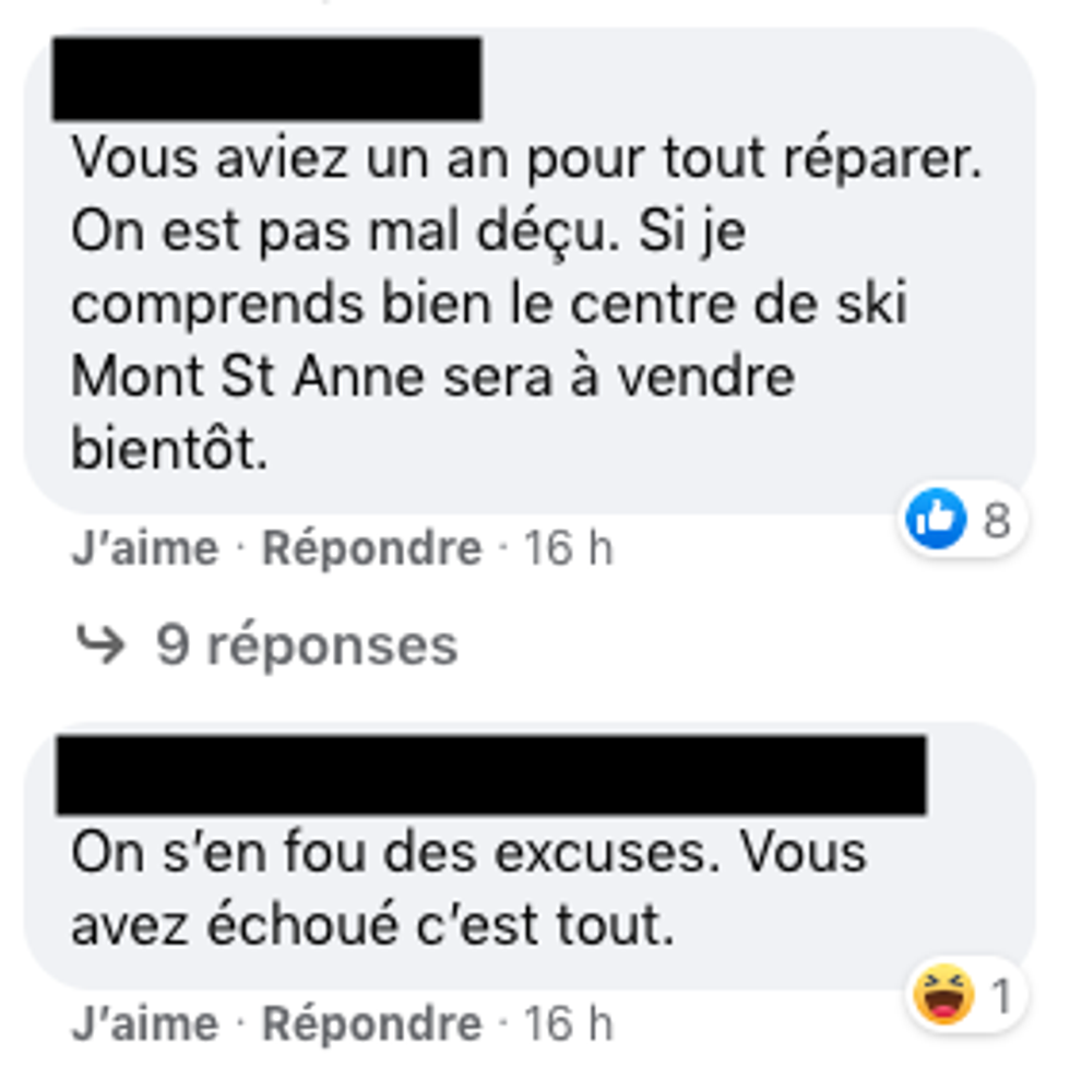 À la suite de cette annonce sur Facebook, les skieurs ont manifesté leur découragement face à la situation.