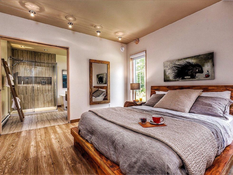 Construite à une heure de la ville de Québec, cette maison luxueuse et contemporaine se trouve à seulement quelques minutes du Massif de Charlevoix et sa terrasse sur le toit avec vue vers les montagnes de la région fait rêver.