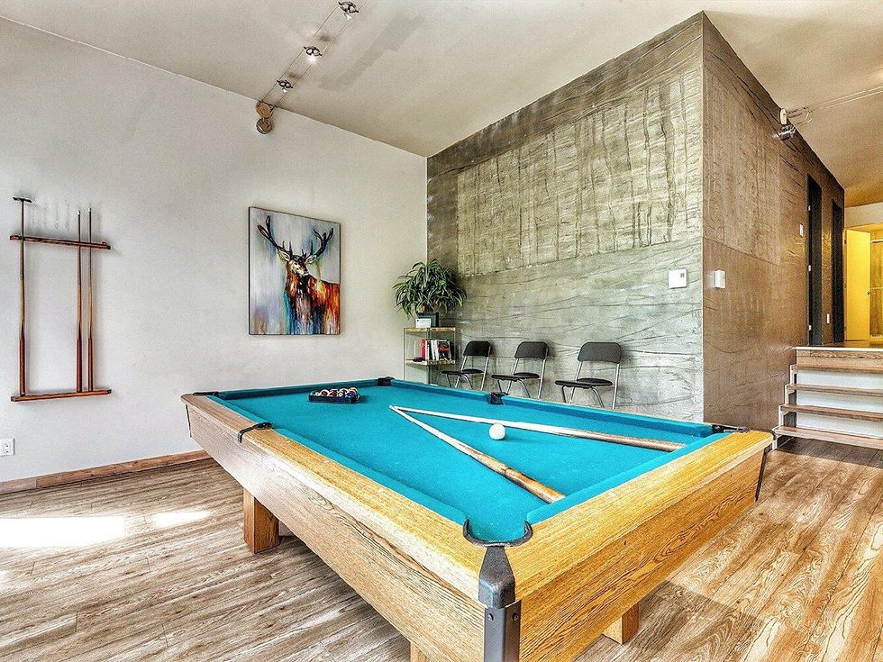 Au sous-sol, il y a un espace parfait pour aménager un bureau à domicile, en plus d'une grande pièce familiale où sont installé.es le cinéma maison et la table de billard.