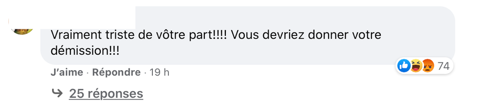Près de 800 personnes ont déjà réagi à celle-ci et elle a récolté plus de 500 commentaires, en plus d'être partagée plus de 350 fois.