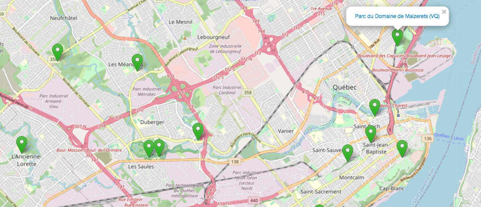 Cette carte te montre environ 50 hikes que tu peux faire cet hiver près de Québec