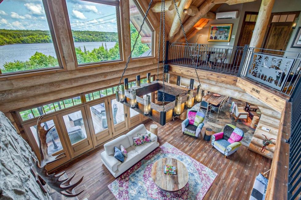 Située à moins de 15 minutes du parc de la Mauricie à Shawinigan, la sublime demeure, dans un coin reculé à 1 h 45 de Québec, est entourée de verdure et est en bordure de l'eau.