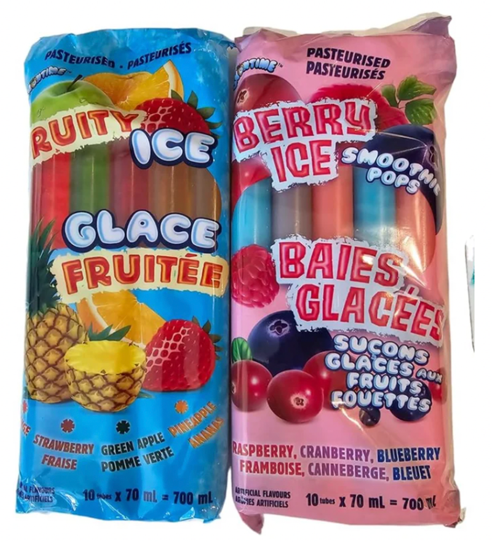 Les baies glacées suçons glacés aux fruits fouettés de la marque Snowtime font l’objet d’un rappel au Canada.
