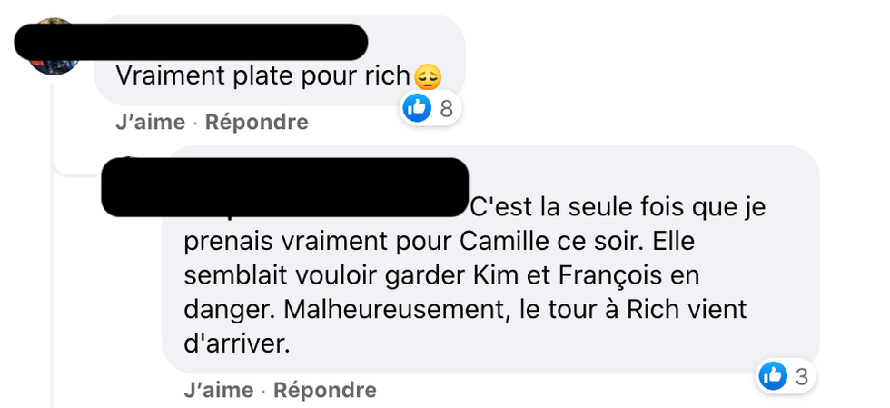 Lors de l'épreuve du veto, des téléspectateurs espéraient que Camille l'emporte puisqu'elle a mentionné que son but était de laisser Kim et François au ballotage.