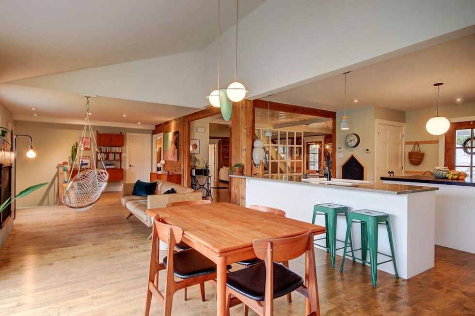 Les prochain.es propriétaires seront non seulement charmé.es par la grande cuisine qui est ouverte sur toutes les autres pièces du rez-de-chaussée, mais aussi par l'immense foyer dans le salon et les petites pièces qu'on trouve dans le toit de la maison.