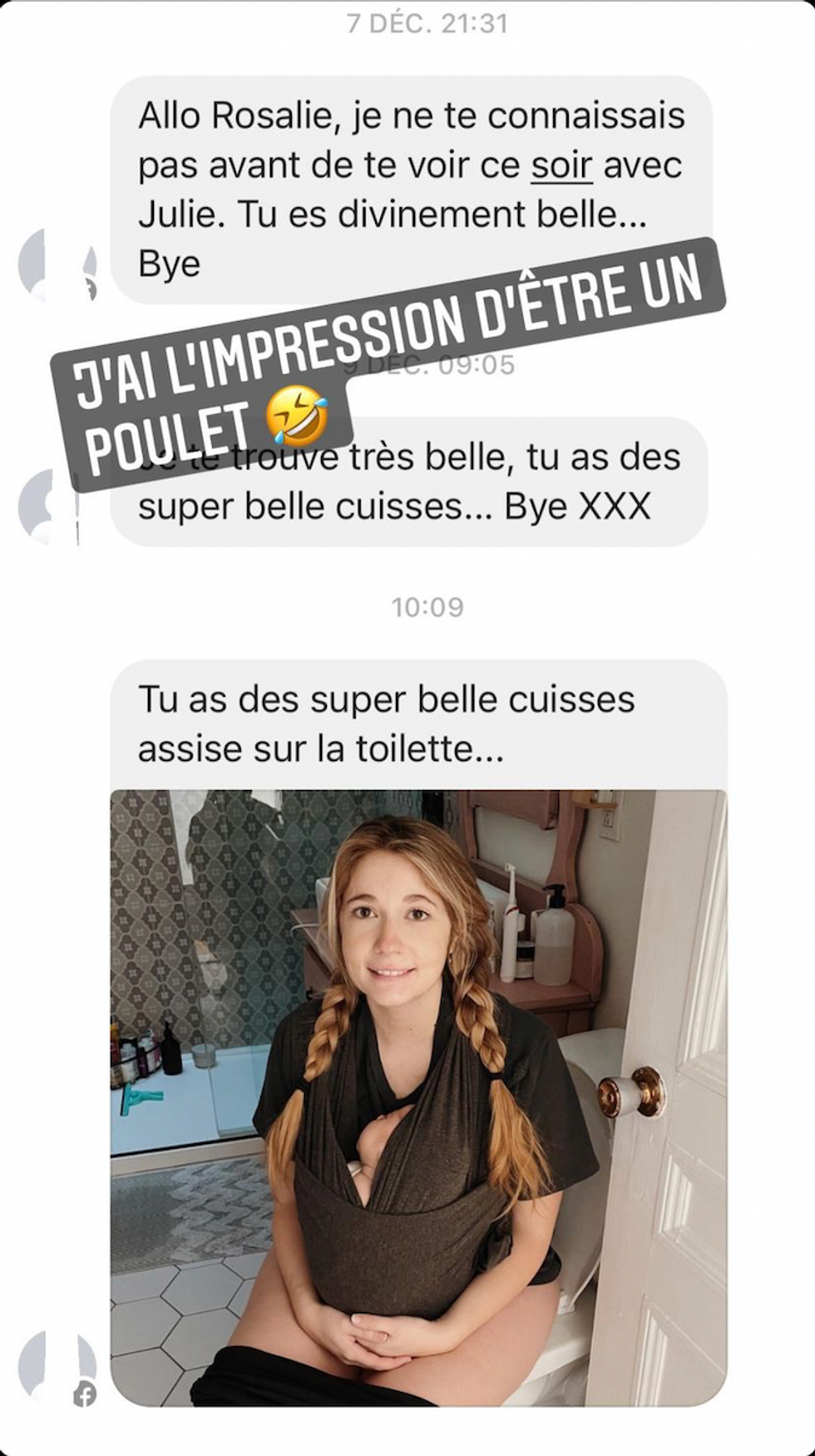Rosalie a alors fait une capture d'écran en ajoutant que la situation lui donnait « l'impression d'être un poulet ».