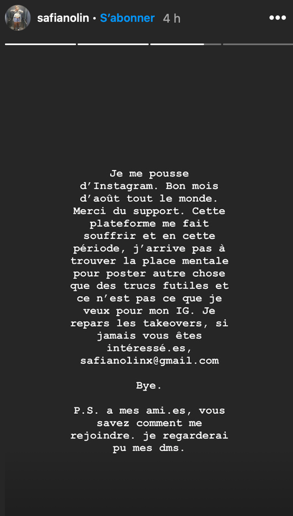 C'est dans une story Instagram qu'elle a dévoilé le fond de ses pensées par rapport à la plateforme, laquelle la « fait souffrir » et la pousse à prendre cette décision.