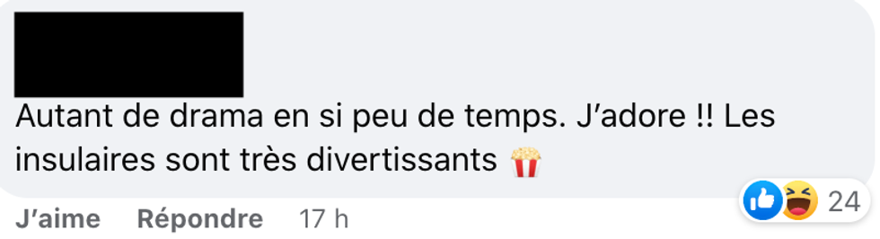 « Autant de drama en si peu de temps. J'adore! Les insulaires sont très divertissants. »