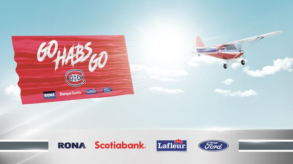 À l'approche du premier match, le 20 mai, les partisan.e.s des Canadiens pourront admirer la bannière « GO HABS GO » qui survolera le centre-ville de Montréal, le Vieux-Port et le canal Lachine. Elle planera dans le ciel pendant deux heures dès midi. Garde ton téléphone à portée de main, car tu pourrais remporter un gros lot en la photographiant.