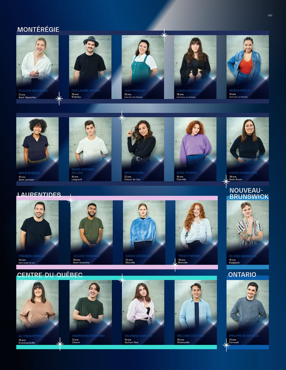 La majorité des candidats viennent de la Belle Province, mais l'un d'entre eux vient du Nouveau-Brunswick, et un seul vient de l'Ontario.
