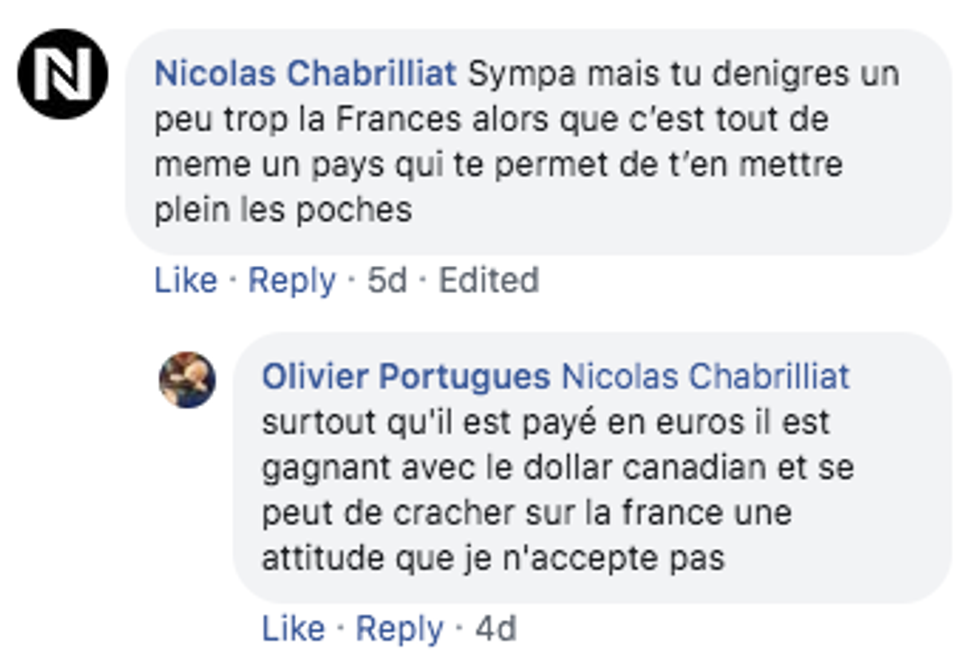 Il commente : « Je pense que le Québec a gagné, c'était évident que le Québec allait gagner. Mais en France, c'est comme tout, vous adorez l'échec. C'est l'effort qui compte! »