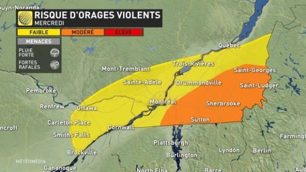 Les risques d'orages violents sont faibles pour la journée de mardi, mais passeront à un niveau modéré le 1er juillet, surtout en Estrie et en Beauce.