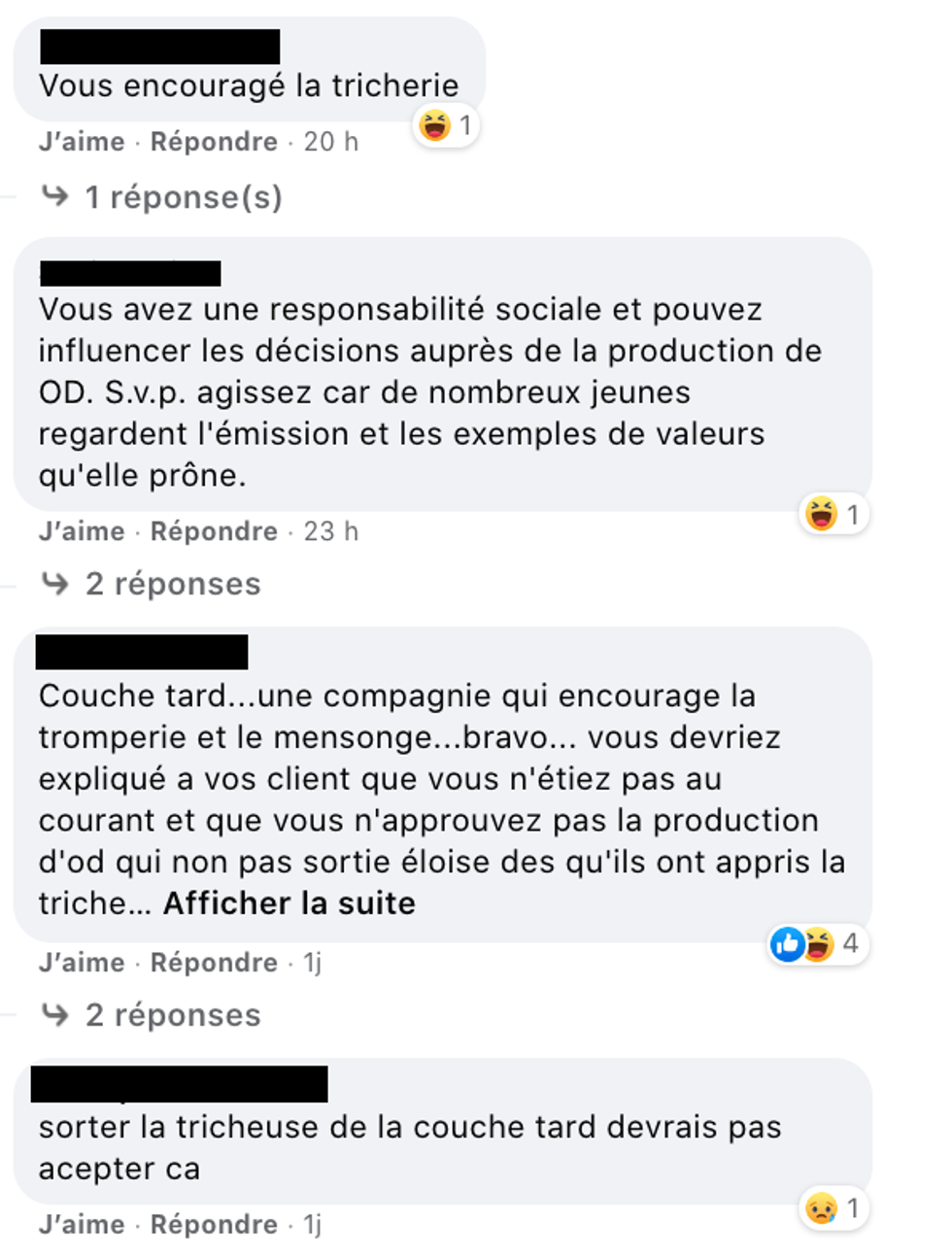 Sur la page Facebook du partenaire d'OD, on peut voir plusieurs commentaires de Québécois qui accusent l'entreprise d'encourager la tricherie :