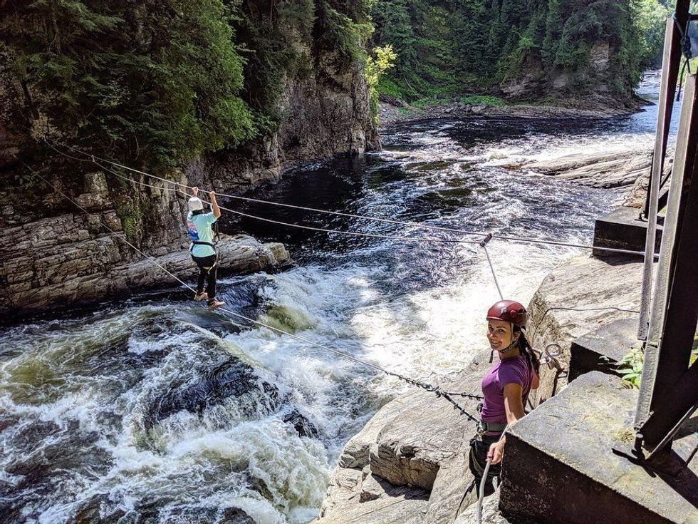 Tu peux faire une « randonnée-escalade » sur des câbles à travers ce canyon au Québec