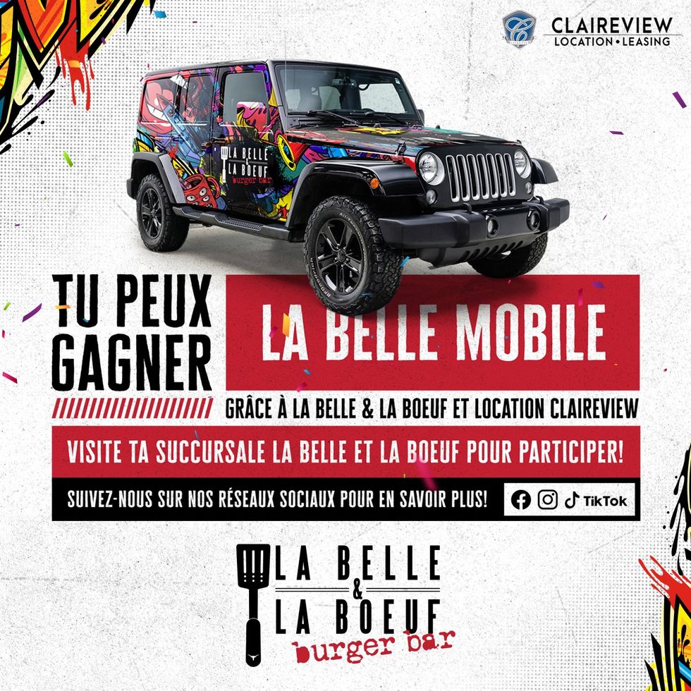 Attention à tous les amateurs.trices de cuisine et d'aventure! Es-tu prêt.e pour une chance de gagner un Jeep Wrangler Unlimited? La Belle et La Boeuf s'est associé avec Location Claireview et est de retour avec un autre concours incroyable, le prix est un Jeep Wrangler entièrement enveloppé de leur marque.