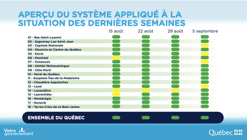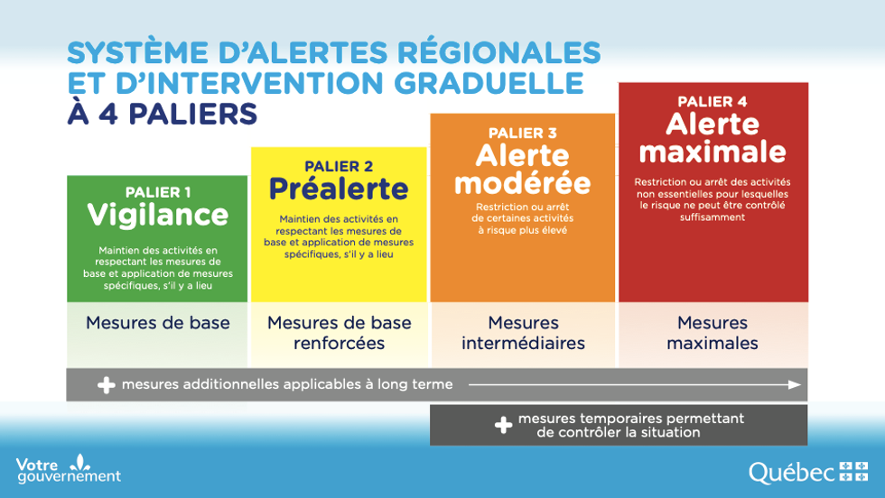 Il semble que la COVID-19 a repris des siennes dans les dernières semaines, alors qu'une moyenne de 170 cas est déclarée chaque jour. Voilà que le gouvernement du Québec annonce aujourd'hui son nouveau système d'alertes régionales.