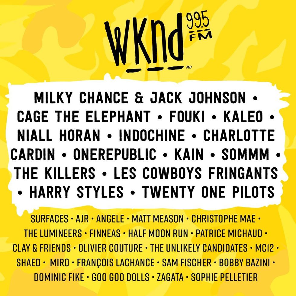Les artistes comme Twenty One Pilots, OneRepublic, Coldplay, Cage The Elephant, James Bay, Jack Johnson, Maroon5 et bien d’autres cohabitent avec ceux du Québec dans un bel équilibre.