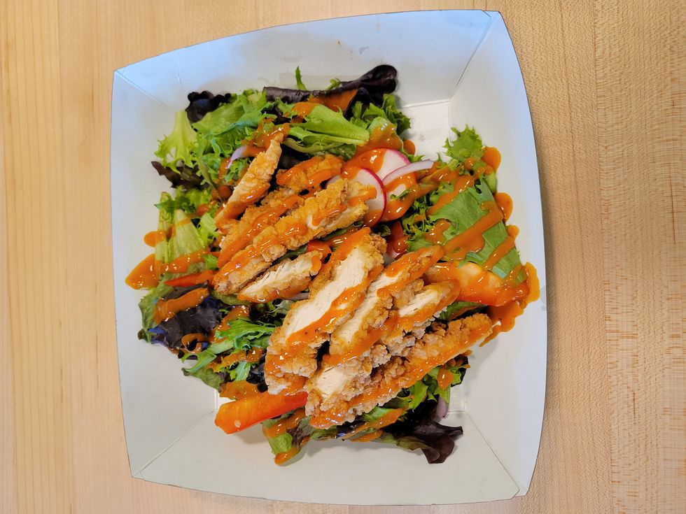 Poulet croustillant + salade = le meilleur des deux mondes.