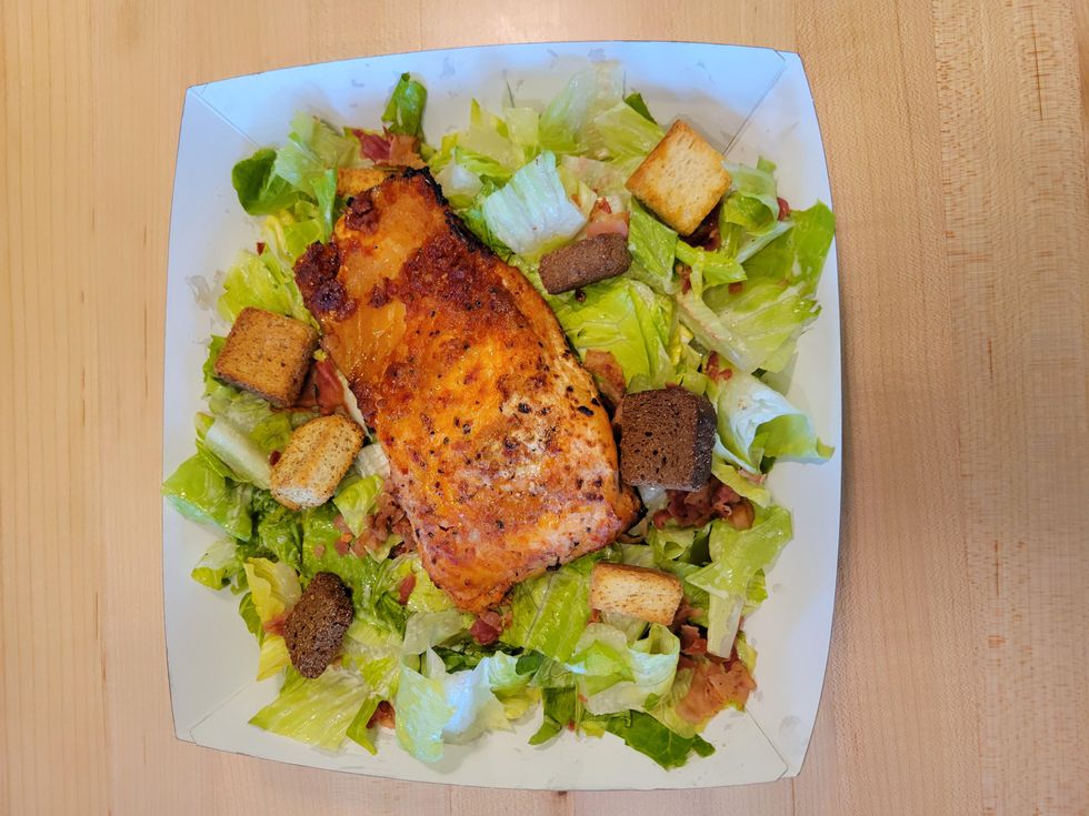 J'étais tellement intriguée par l'option saumon pour la salade César que j'ai décidé de choisir cette protéine au lieu du traditionnel poulet rôti. J'aurais pu opter aussi pour la goberge, seulement, le saumon m'inspirait davantage.