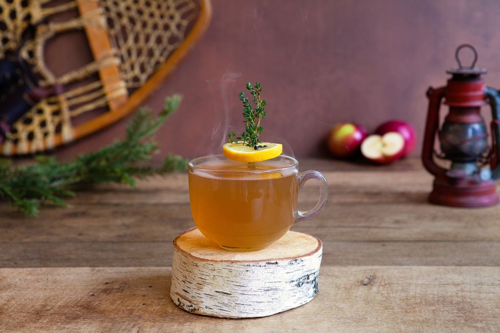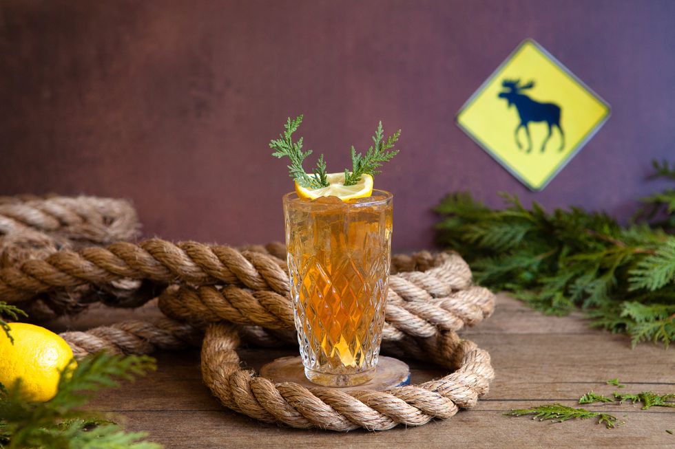 - Dans un verre de type highball, verser le whisky à l’érable et le jus de citron.