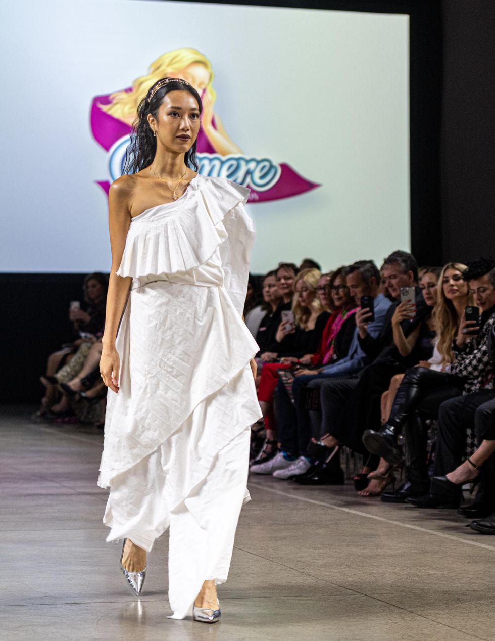 Dès que la robe céleste de Sam Stringer a défilé sur la piste de la Collection Cashmere, tout le public a semblé lever son téléphone à l'unisson pour prendre une photo.