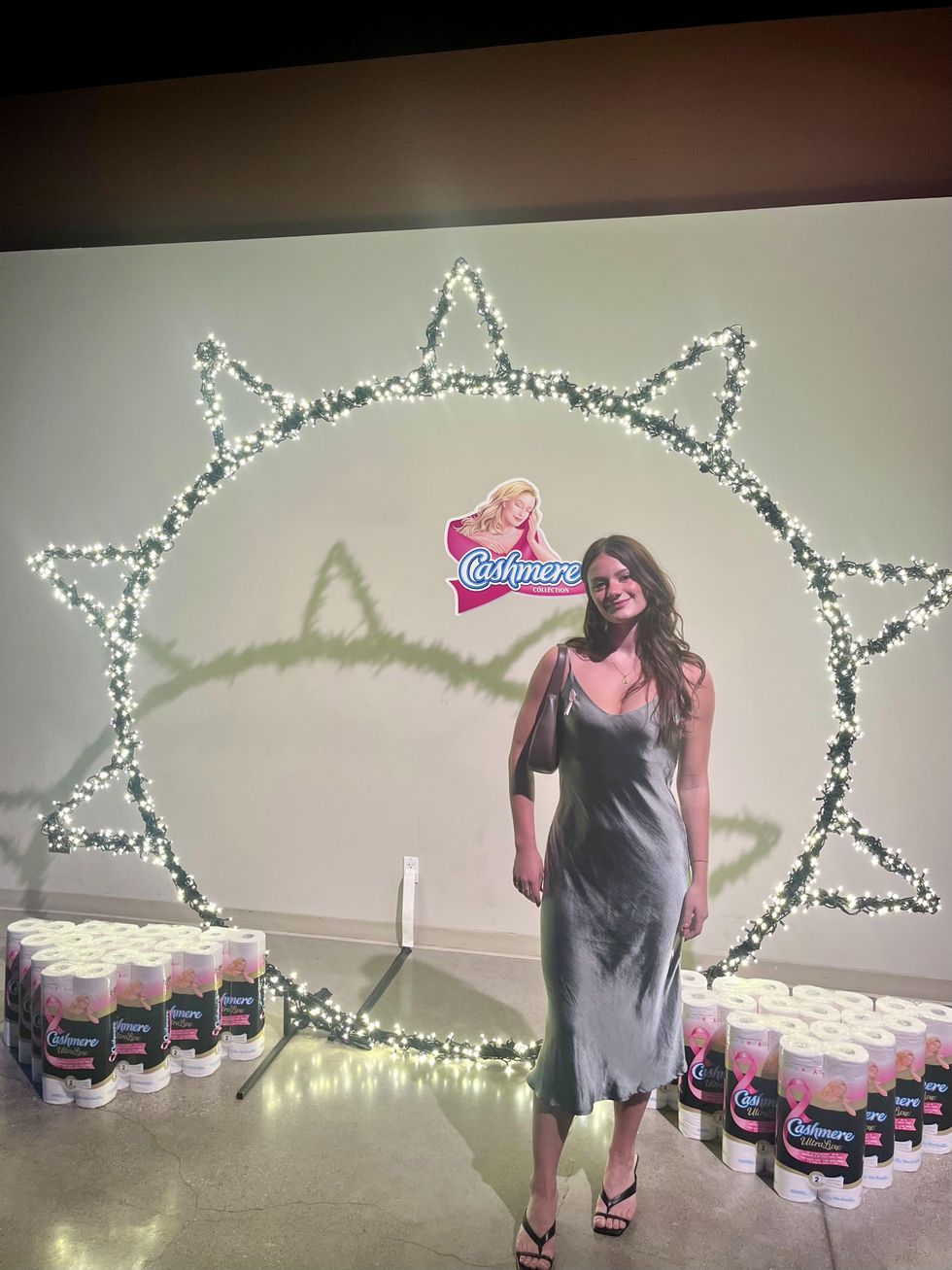 Une énergie électrique circulait dans la salle Scarlett au style art-déco distinct. À l’intérieur, les invité.es sirotaient leurs breuvages et se mêlaient autour d’un bar chic — celui-ci garni de paquets de papier hygiénique Cashmere UltraLuxe, bien sûr.