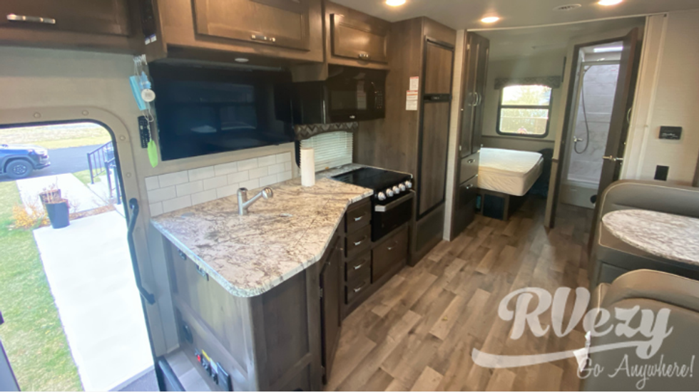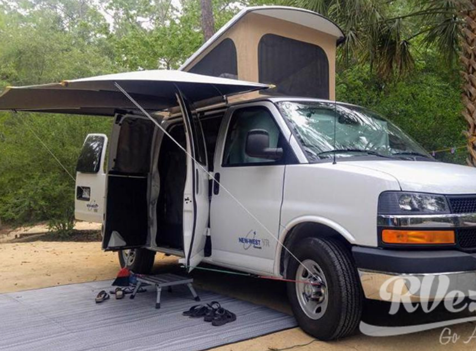 Pourquoi tu dois y aller : C'est LE van à réserver pour partir en famille. Il peut accueillir jusqu'à huit personnes et possède une salle de bain complète, un coin repas avec une table se transformant en lit, un divan convertible en lit, une chambre fermée et trois télévisions dont une à l'extérieur.