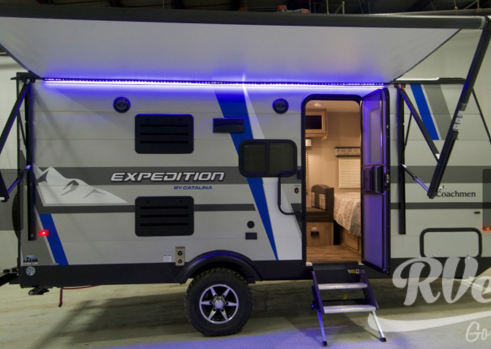 Pourquoi tu dois y aller : Cette roulotte peut accueillir jusqu'à cinq personnes, elle possède deux lits superposés, un lit queen et la table à manger peut aussi se transformer en lit. Un rack à vélo et un rack pour kayak sont compris dans le prix de la location. Le petit plus ? Ces néons violets te donneront l'impression de camper dans une boîte de nuit, en plein air!